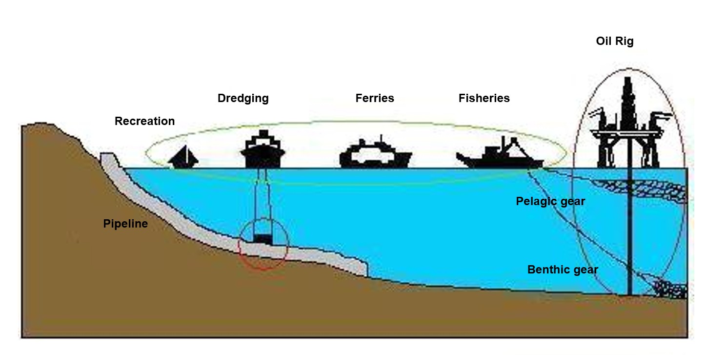 Marine protected areas; Aquaculture development; Fisheries rules; Navigation restriction; Gravel extraction; Petroleum extraction; Part expansion; and Wind farm siting.